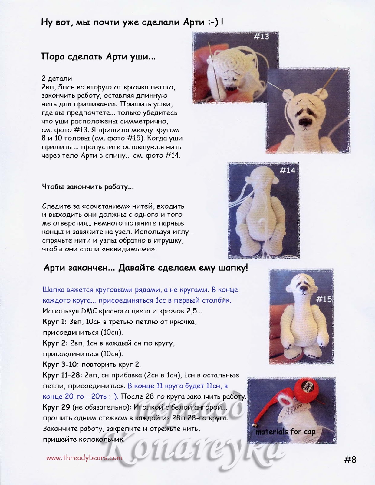 Обязательно уделите время закреплению и придания игрушке формы после окончания вязания. Правильно утрамбуйте набивку, чтобы ваш белый медведь был мягким и пушистым.