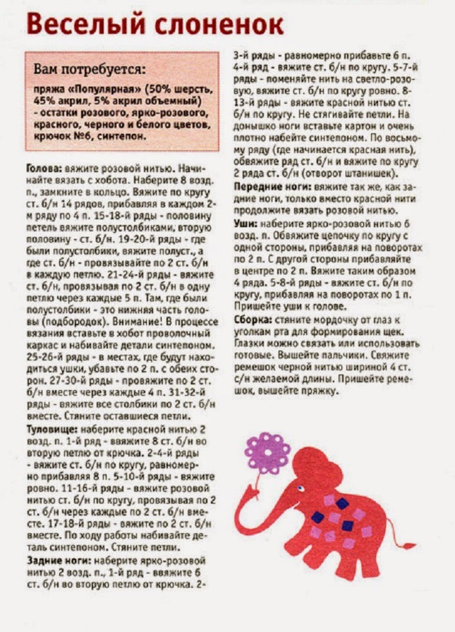 Не забывайте о главном - вязание - это творчество и удовольствие, наслаждайтесь процессом и радуйтесь готовому результату вязаного слоника.