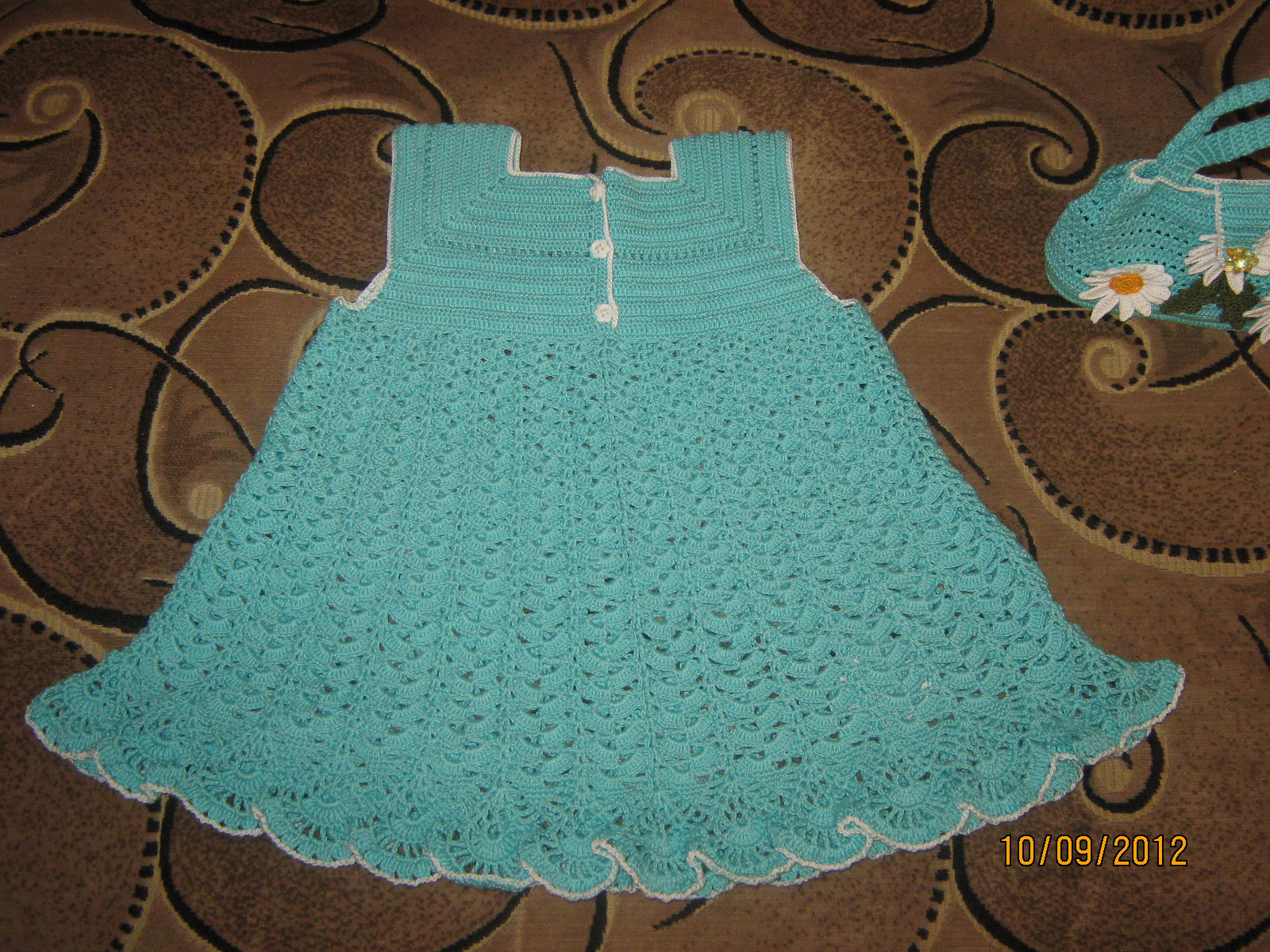 Как связать платье красивым узором из ромашек на крючке