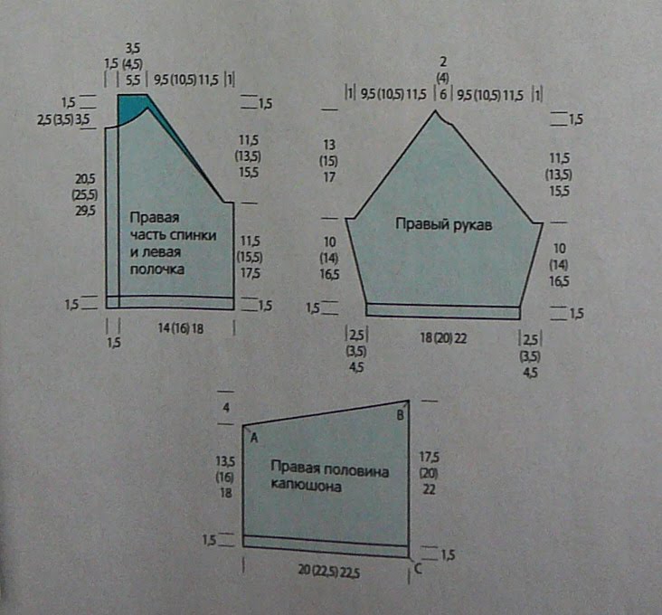 При начале вязания горловины, используйте эластичную резинку, чтобы она лучше облегала шею и капюшон был правильной формы.