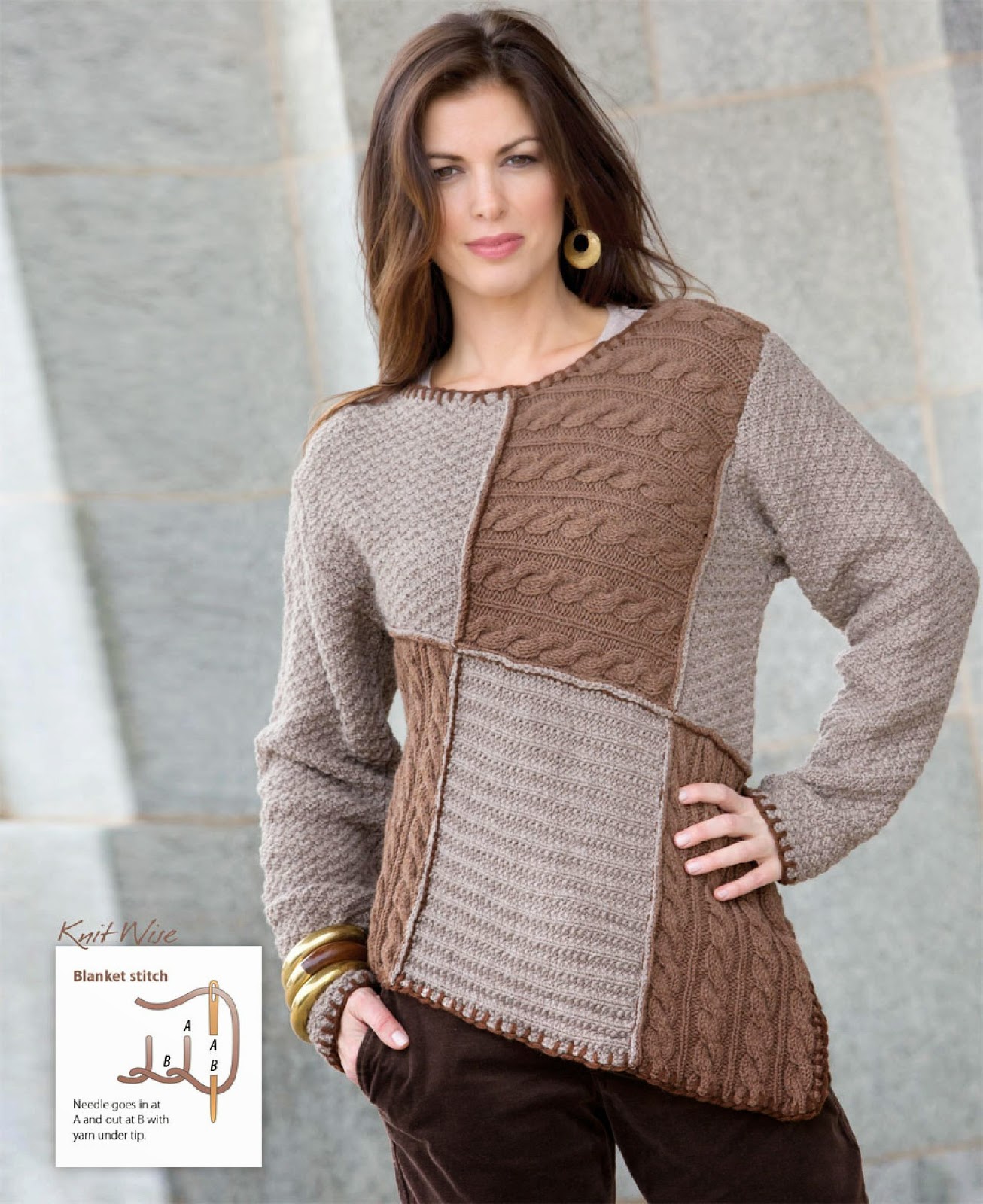 Носите и наслаждайтесь вашим уникальным пэчворк спицами пуловером, который вы создали своими руками!