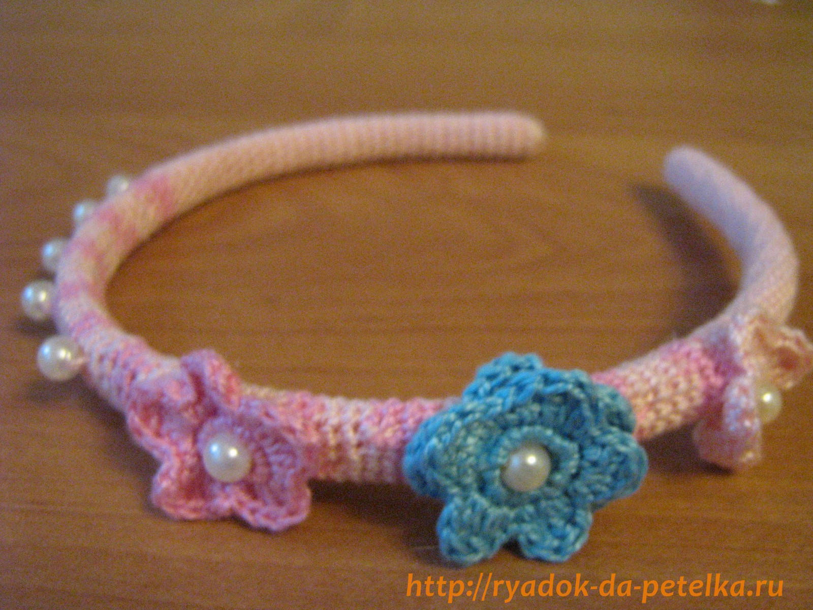 Обвязываем обруч и декорируем его цветами вязаными крючком.