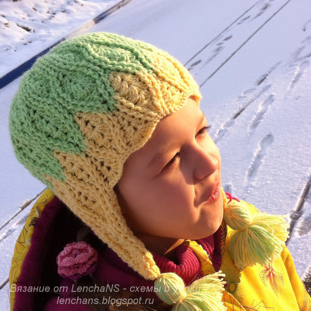 шапка крючком/вязание крючком/шапка ушанка/мк